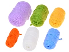 - 6 x motki włóczki w pięknych kolorach: ecru, niebieski, żółty, zielony, fioletowy, pomarańczowy,
