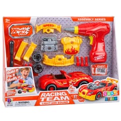 Do zestawu dołączona jest wkrętarka na baterie, która ułatwia montaż i demontaż elementów. To sprawia, że zabawa staje się bardziej realistyczna i angażująca. Samochód posiada efekty świetlne, które dodatkowo uatrakcyjniają zabawę i nadają pojazdowi sportowego charakteru.