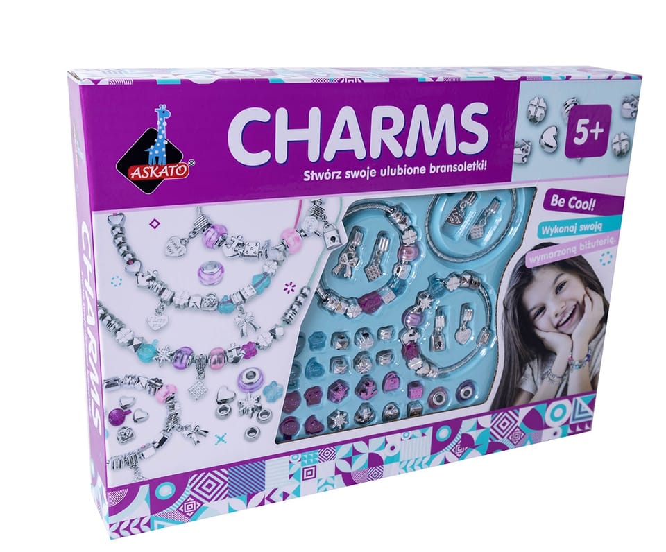 Zestaw do stworzenia bransoletek z charmsami i naszyjników.Piękne błyszczące bransoletki z kolorowymi charmsami o różnych kształtach będzie super ozdobą na rączce dziewczynki. Do tego można stworzyć pasujący naszyjnik, który uzupełni stylizację.Dziecko podczas zabawy rozbudza własną wyobraźnie oraz ćwiczy swoje zdolności manulane.