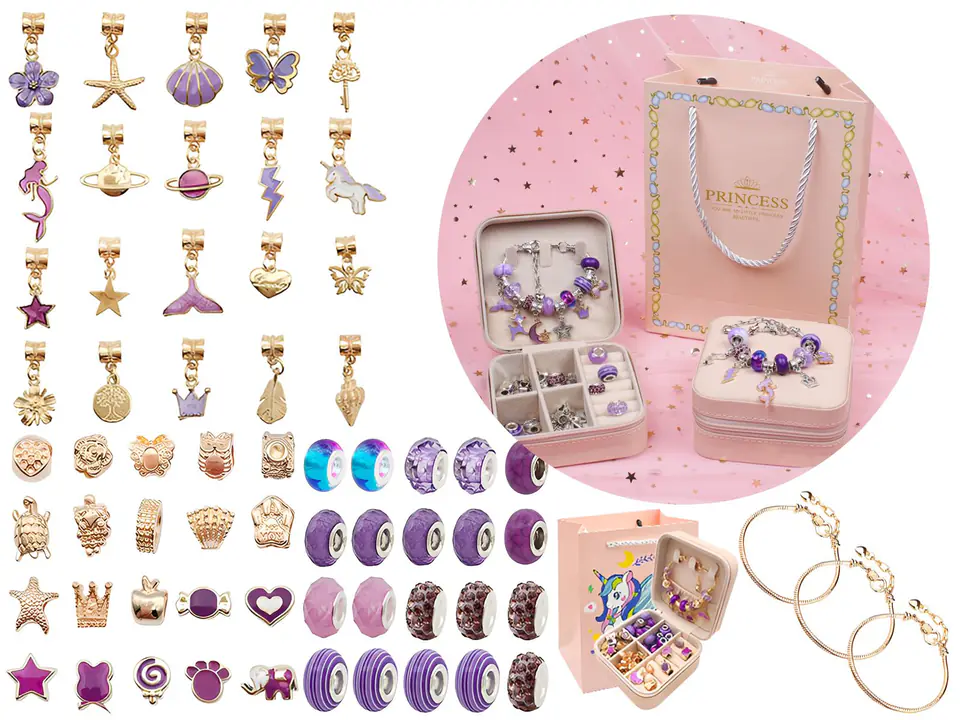 Zestaw Do Tworzenia Robienia Biżuterii, Bransoletek, Charmsy, Zawieszki, Koraliki ODCIENIE FIOLETU