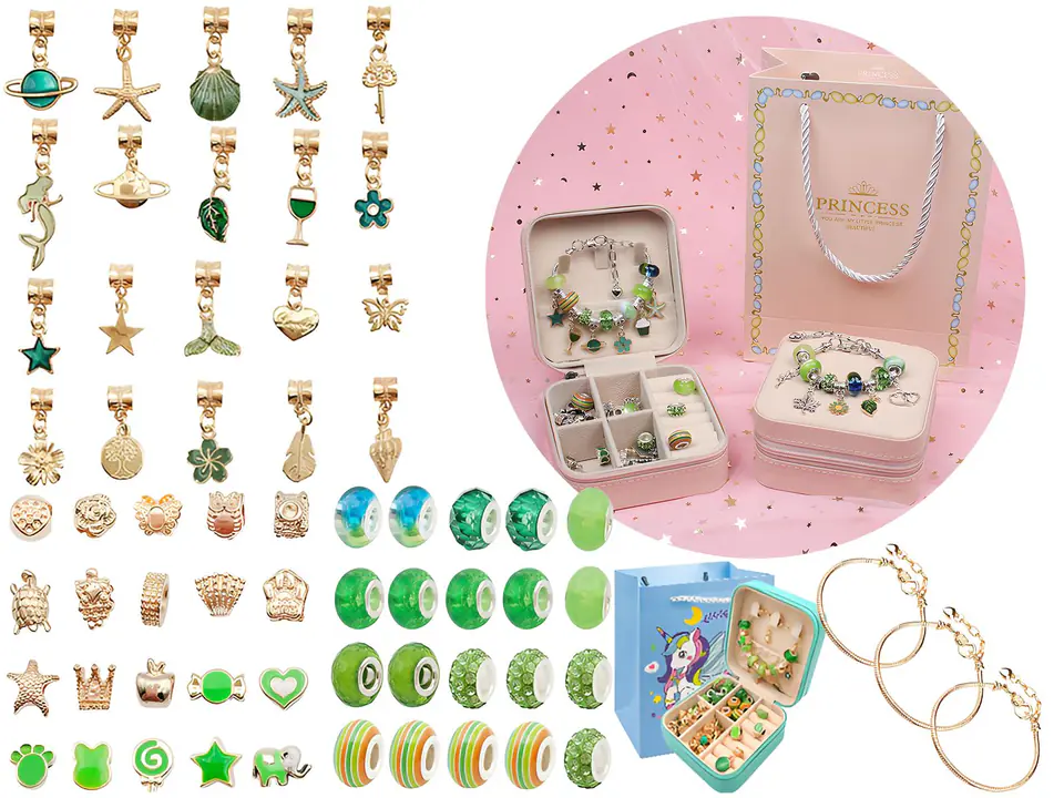 Zestaw Do Tworzenia Robienia Biżuterii, Bransoletek, Charmsy, Zawieszki, Koraliki ODCIENIE ZIELENI