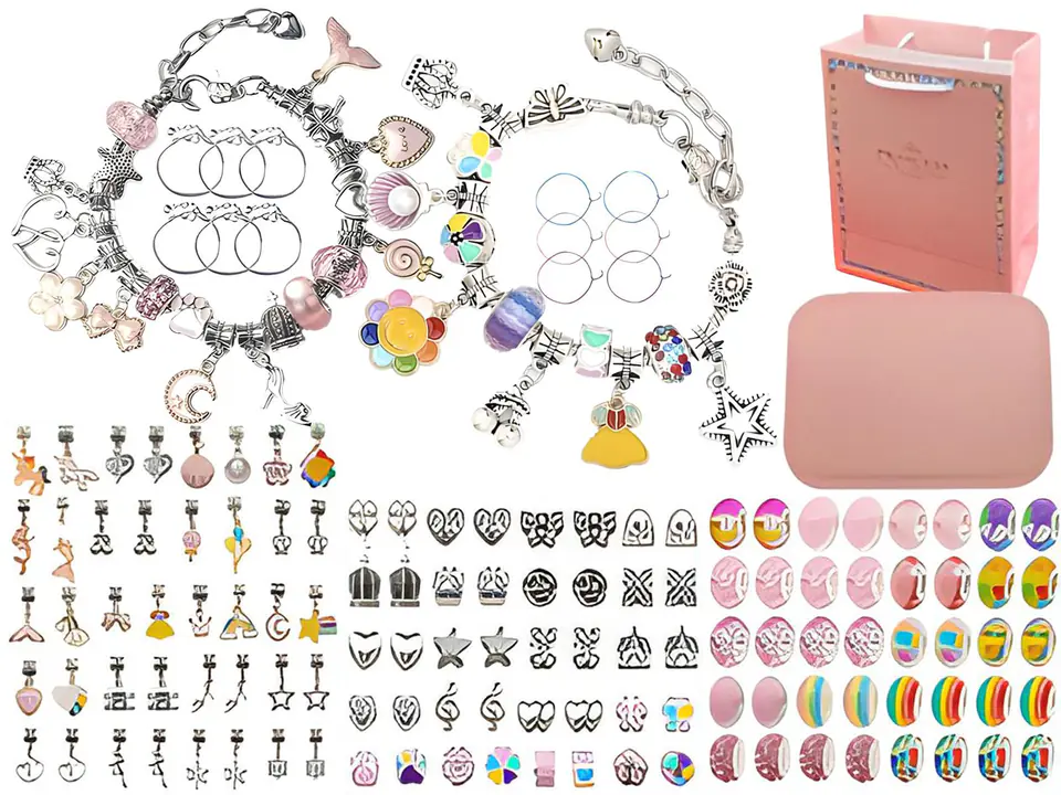Zestaw Do Tworzenia Robienia Biżuterii, Bransoletek, Charmsy, Zawieszki, Koraliki TĘCZOWO-RÓŻOWY MIX + Etui