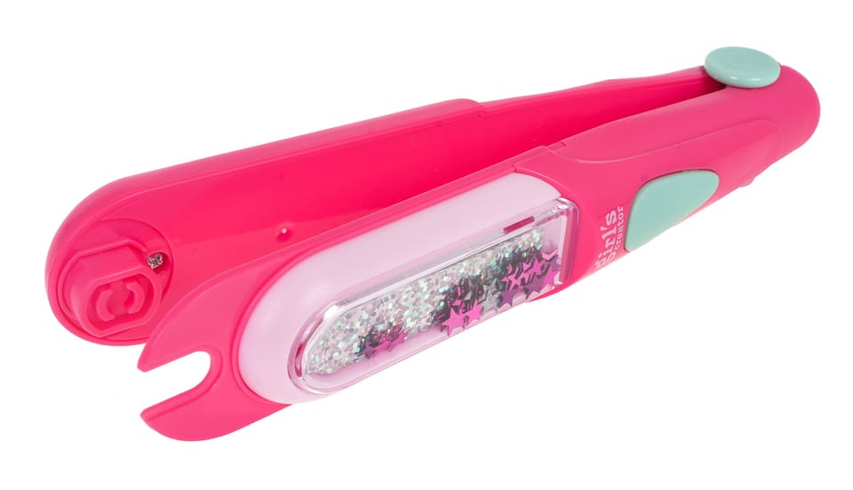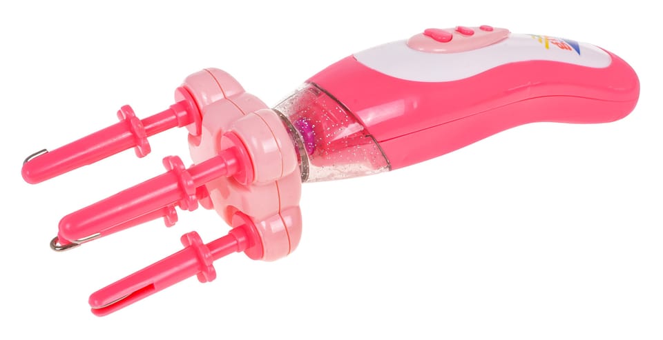 | Bogato wyposażony zestaw z maszynką do zaplatania włosów w warkocze i maszynką do aplikacji biżuterii na włosach, to propozycja dla dzieci od 6-go roku życia. Zestaw składa się z 24 elementów. Jest tutaj maszynka do zaplatania włosów w warkocze i maszynka do aplikacji koralików na włosach, oraz szczotka do włosów, diamenciki i gumki do włosów. Maszynka do zaplatania warkoczy zasilana jest bateriami typu 2 x AA 1,5 V, baterii brak w zestawie. Użycie maszynki jest bardzo proste, wystarczy włożyć 3 pasma włosów do otworów w bolcach i przesunąć przycisk z diamentem w górę. Gotowe! Maszynka do aplikacji koralików na włosy wyglądem przypomina prostownicę. Nie jest zasilana na baterie. Aby nanieść aplikację na włosy, należy na górnej części maszynki umieścić biżuterię a na dolnej spinkę. Następnie wkładamy pasmo włosów do maszynki i dociskamy. Gotowe!! Aplikacje i spinki są wielorazowe. | |