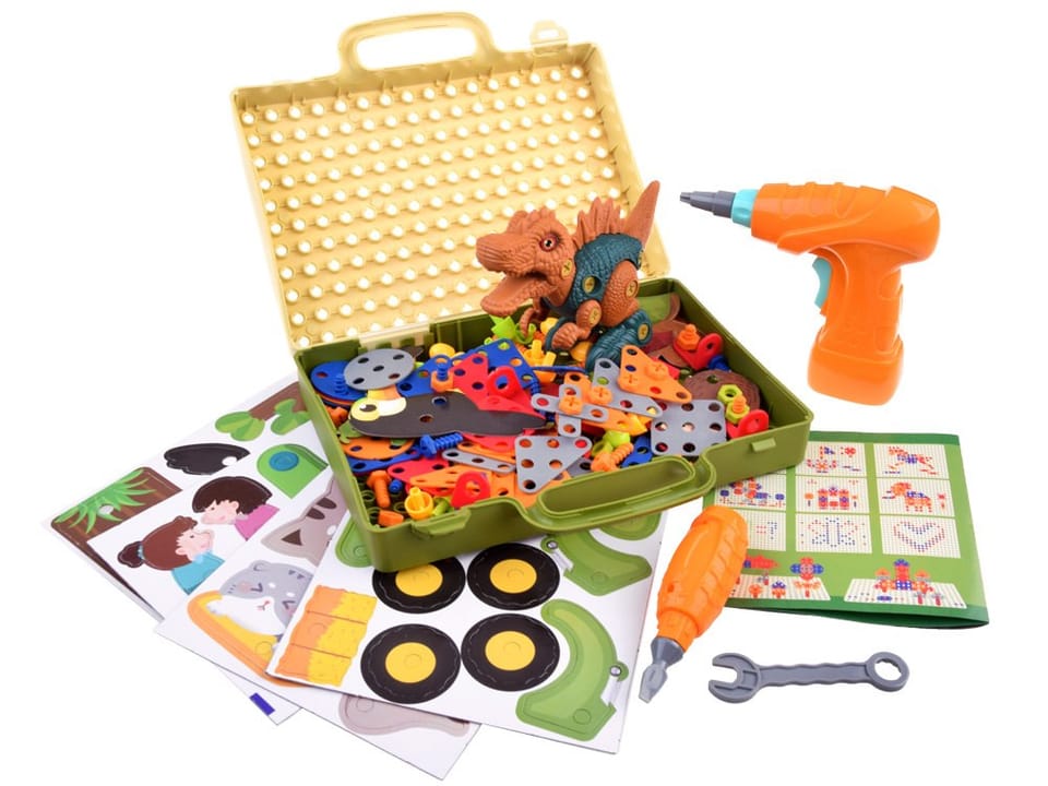 Stwórz swój prehistoryczny świat dinozaurów za pomocą skręcania ze sobą elementów i baw się do woli. Zestaw zawiera elementy do skręcenia znanego nam Spinozaurusa największego dinozaura z grupy teropodów, jednego z największych mięsożernych dinozaurów. Zestaw na pewno zachwyci każdego miłośnika tych gadów. Podstawą konstrukcji jest skrzynka z dziurkami, do których możemy dokręcać różne elementy dołączone do zestawu według własnej wyobraźni lub za pomocą dołączonej obrazkowej instrukcji. Kreatywne klocki pozwolą na rozwinięcie wyobraźni przestrzennej, zdolności manualnych oraz koordynacji ruchowej. Poprzez zabawę dziecko ma okazję uczyć się logicznego myślenia, posługiwania się przedmiotami i dopasowywania ich do siebie. Dla rodziców to niezapomniane chwile, które mogą spędzić na wspólnej zabawie ze swoimi pociechami.