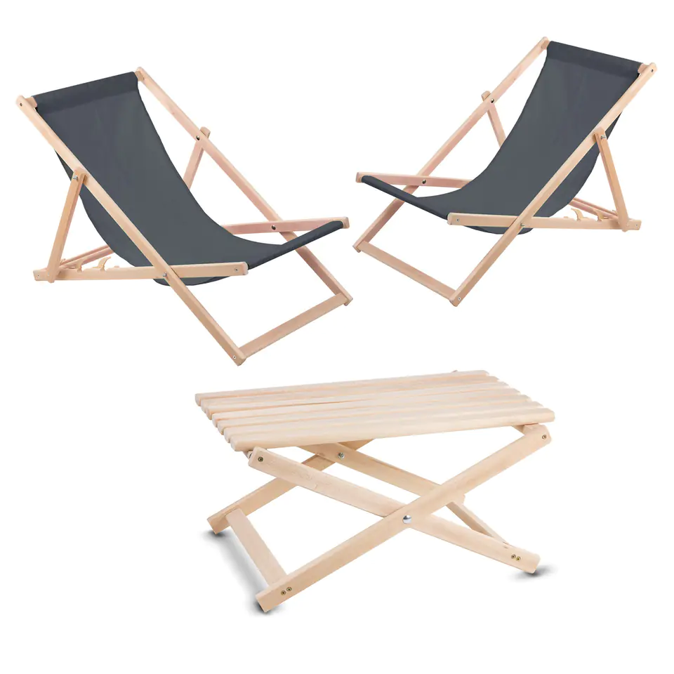- Zestaw ogrodowy składający się z 2 leżaków i stolika kawowego