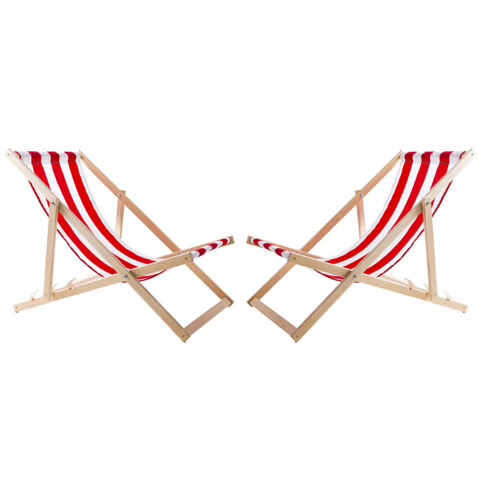 Leżaki mają mocną bukową, ale lekką ramę. Dzięki temu bez problemu zabierzemy je w teren, na plażę, do ogrodu. Wykonane z wysokiej jakości tkaniny siedziska zapewniają komfort i wygodę, a regulacja krok po kroku pozwala dopasować pozycję leżenia do indywidualnych preferencji.