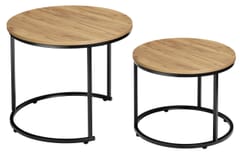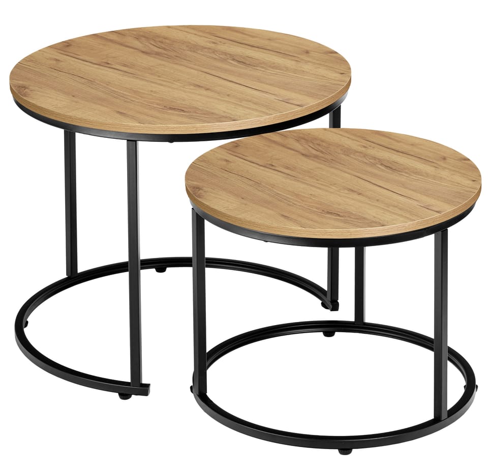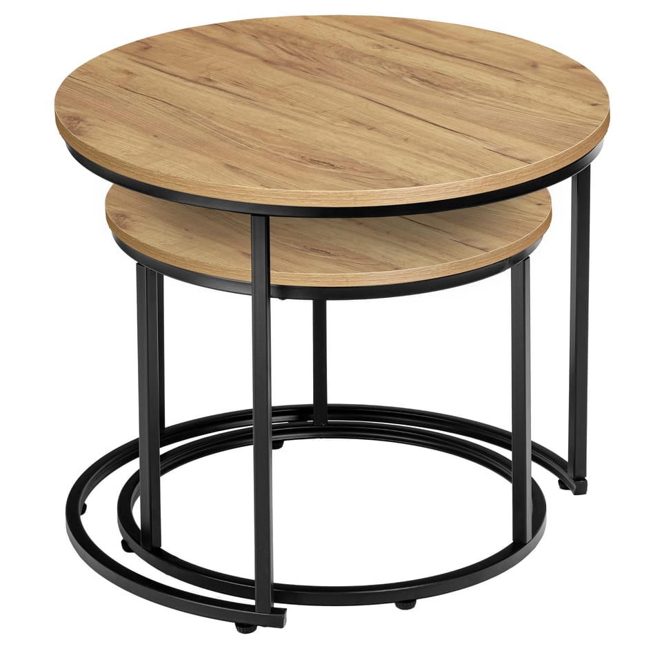 Zestaw dwóch stolików loft Galen Small CraftPrzeznaczenie: salon, biuro, butik | Kolory: stelaż czarny, płyta craft Stoliki loftowe Galen Small to komplet dwóch sztuk o różnych wysokościach, dzięki czemu tworzą piękną kompozycję i są bardzo praktyczne. Wyższy stolik można nałożyć na niższy by zaoszczędzić miejsce. Galen Small to zestaw najwyższej jakości, wykonany z największą starannością. Stoliki tworzy stabilna rama ze stali malowanej proszkowo oraz mocny blat w kolorze craft. Polecamy do do stylu loft, glamour i vintage. ➡️ Najważniejsze cechy zestawu✅ Przemyślana konstrukcja: Możliwość wsunięcia mniejszego stolika pod większy, co pozwala zaoszczędzić miejsce.✅ Ciekawe wzornictwo: Blaty w kolorze craft przyciągają uwagę.✅ Solidne materiały: Stelaż wykonany z czarnej, matowej stali malowanej proszkowo.✅ Wysoka jakość wykonania: Materiały najwyższej jakości i dbałość o najmniejsze szczegóły.✅ Nowoczesny styl: Prosty, nowoczesny design pasujący do różnych motywów dekoracyjnych.✅ Uniwersalność: Doskonale sprawdza się w pomieszczeniach w stylu industrialnym, loftowym i vintage.✅ Wyjątkowo gruba konstrukcja i blaty: Zapewniają trwałość i stabilność zestawu. Specyfikacja:Materiał stelażu: stal malowana proszkowoMateriał płyty: płyta laminowanaStyl: Vintage, Loft, IndustrialMaksymalne równomierne obciążenie jednego stolika: 30 kgKolor płyty: craftWaga małego stolika: 2,86 kgWaga dużego stolika: 3,7 kgWiększy stół można łatwo nałożyć na mniejszy stolik Wymiary dużego stolika:Wysokość: 45 cmSzerokość: 53 cmGłębokość: 53 cmGrubość płyty: 1,6 cmWymiar metalowych pionowych profili (A): 1,6 cm x 1,6 cmWymiar metalowych profili podstawy (B): 1,6 cm x 1,6 cm Wymiary małego stolika:Wysokość: 35 cmSzerokość: 43 cmGłębokość: 42 cmGrubość płyty: 1,6 cmWymiar metalowych pionowych profili (A): 1,6 cm x 1,6 cmWymiar metalowych profili podstawy (B): 1,6 cm x 1,6 cm Informacje dodatkowePrzedstawione kolory należy traktować poglądowo - mogą odbiegać od rzeczywistych ze względu na różne ustawienia monitorów oraz proces obróbki zdjęć. Rzeczywiste wymiary mogą się różnić od podanych wyżej. Tolerancja błędów może wynosić +/- 5%.Marka:LoftInspiredKod EAN:5905523066166Kolor:czarny, craftWysokość:45 cmŚrednica:53 cmMaksymalne obciążenie:30 kg na stolikMateriał stelaża: stal malowana proszkowo