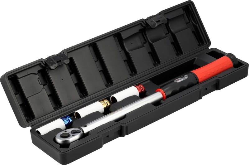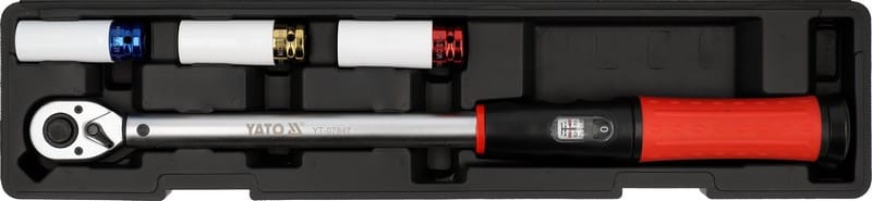 Zestaw z kluczem dynamometrycznym do wymiany kół YT-07847 to praktyczne rozwiązanie do obsługi połączeń śrubowych o wyższym momencie dokręcania, typowych dla kół samochodowych.