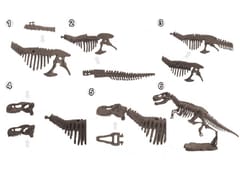 II. Wykopaliska 1. Do krateru wulkanu nalej odrobinę wody. 2. Za pomocą dłuta i młotka zacznij kopać w poszukiwaniu skamielin. 3. W modelu wulkanu ukryte są kolorowe minerały oraz szkielet dinozaura- t-rexa. 4. Po wykopaniu wszystkich elementów oczyść je dokładanie za pomocą pędzelka (można je również umyć pod bieżącą wodą). 5. Złóż swój model dinozaura i ciesz się niepowtarzalną ozdobą pokoju.