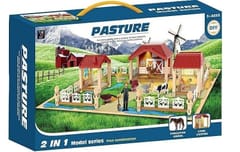 zestaw farma, budynek ze światłem, zwierzęta; 44x25x11cm, Box