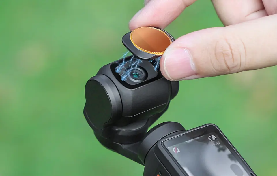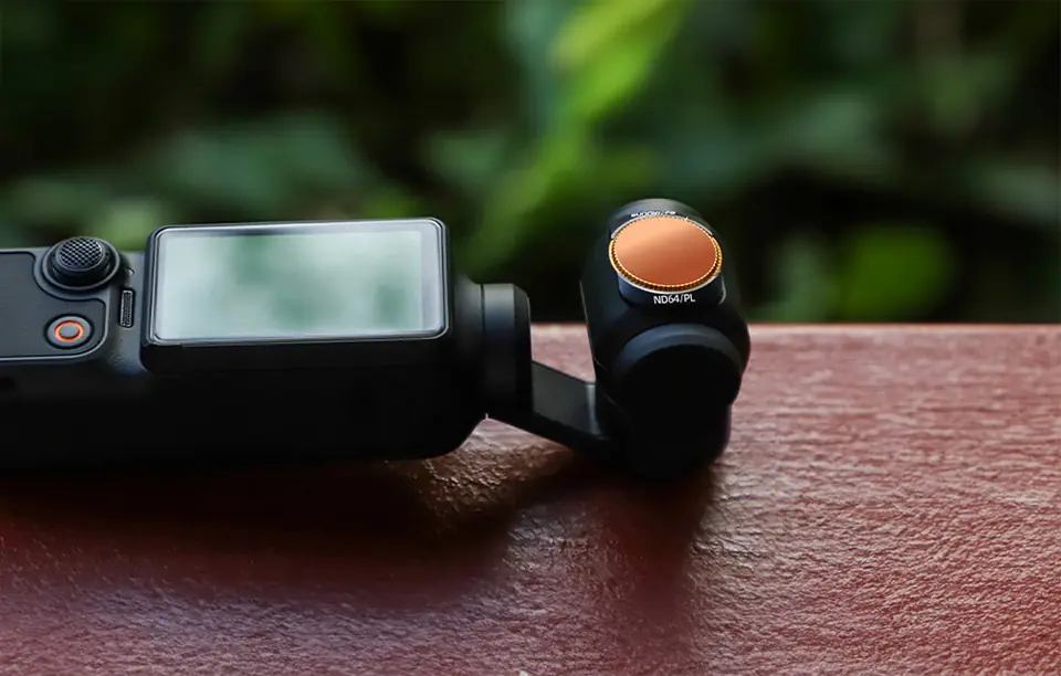 Filtr MCUV (Multicoated UV) pomaga w redukcji promieni UV i eliminuje niepożądane efekty niebieskiego odcienia na zdjęciach i filmach. Filtr CPL (Circular Polarizer) redukuje odblaski i refleksy, zapewniając bardziej klarowne i wyraziste zdjęcia oraz filmy. Natomiast filtr ND32 i ND64 pozwalają na kontrolowanie ilości światła docierającego do kamery, umożliwiając korzystanie z długich czasów naświetlania nawet w pełnym słońcu.