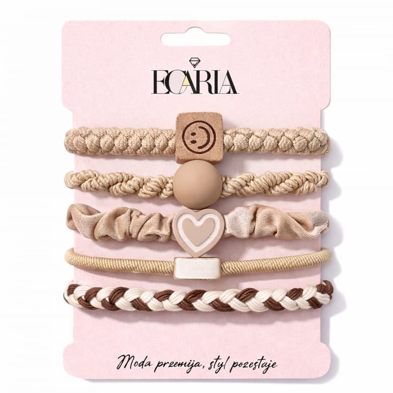 Gumki do włosów - Zestaw 5 szt.Wspaniały dodatek do włosów, który pokochają Wasze klientki. Wymiary:Średnica gumki do 9 cm Wymiary kartonika z opakowaniem:11,5 cm x 15 cm x 1,5 cm Waga:10g netto / 19g brutto Zestaw obejmuje 5 gumek do włosów.