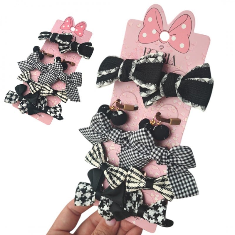 Zestaw frotek gumek do włosów 10w1 na plakietce, KOKARDKI czarno białe GUM172