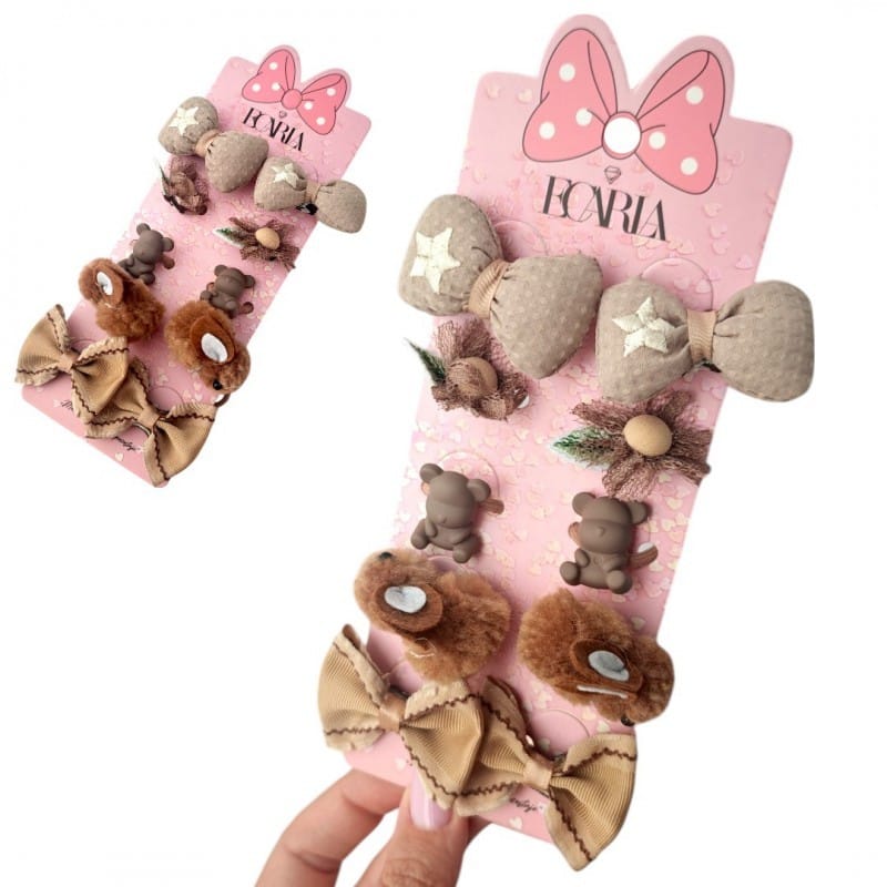 Zestaw frotek gumek do włosów 10w1 na plakietce, KOKARDKI, królik GUM170