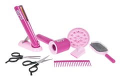 Interaktywny, bogato wyposażony zestaw fryzjerski z suszarką z wymiennymi dyszami i prostownicą do włosów na baterie to propozycja dla dzieci od 3- go roku życia. W zestawie znaleźć możemy szeroką gamę narzędzi niezbędnych w pracy fryzjera w tym suszarkę, prostownicę, nożyczki, grzebienie do włosów i inne akcesoria. Suszarka do włosów wydaje odgłos suszenia i emituje strumień powietrza. Posiada dwustopniową regulację stopnia nawiewu, a podczas suszenia wydaje odgłosy jak prawdziwa. Prostownica posiada efekty świetlne oraz odgłosy towarzyszące prostowaniu włosów. Suszarka do włosów zasilana jest bateriami typu 3 x AAA (brak w zestawie), prostownica bateriami 2 x AAA (brak w zestawie). Funkcje zestawu: - suszarka z wymiennymi nasadkami (dyfuzor i nasadka skupiająca), - suszarka emituje strumień powietrza, - suszarka posiada dwustopniową regulację stopnia nawiewu, - suszarka wydaje odgłosy suszenia, - prostownica posiada suwak do zamykania i otwierania, - prostownica posiada oświetlenie, - prostownica wydaje odgłosy charakterystyczne dla prostowania włosów, - praktyczny stojak na suszarkę.