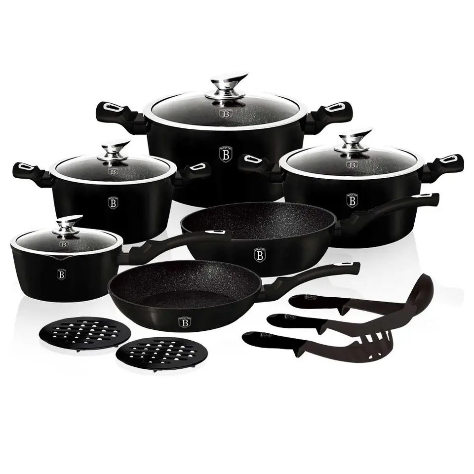 15-elementowy zestaw garnków BERLINGER HAUS z serii METALLIC LINE - BLACK THERMOGUARD