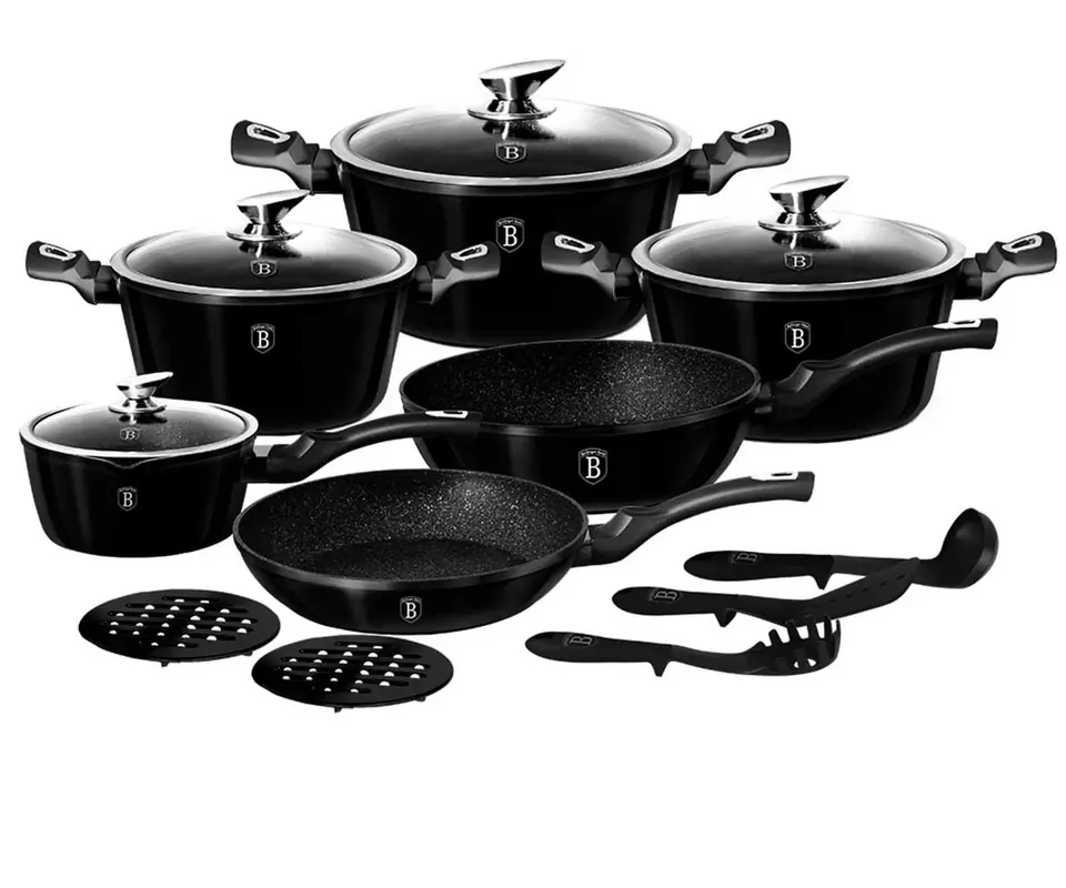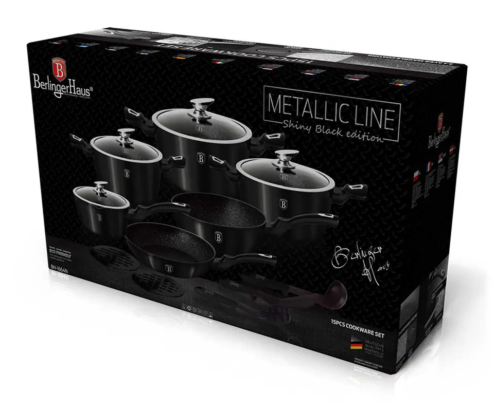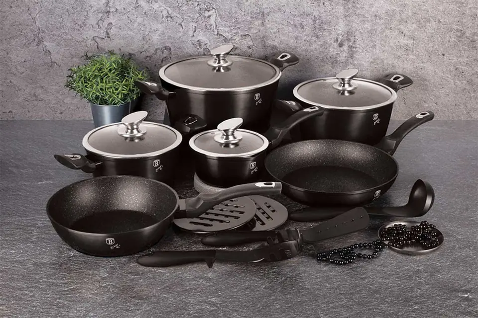 15-elementowy zestaw garnków BERLINGER HAUS z serii BLACK SILVER