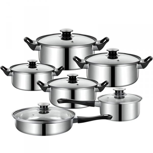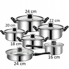 - - 12-elementowy zestaw naczyń kuchennych (6 garnków + 6 pokrywek)