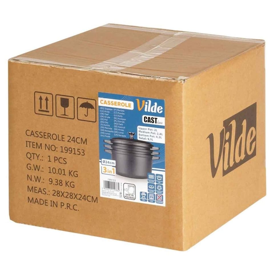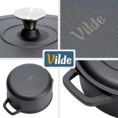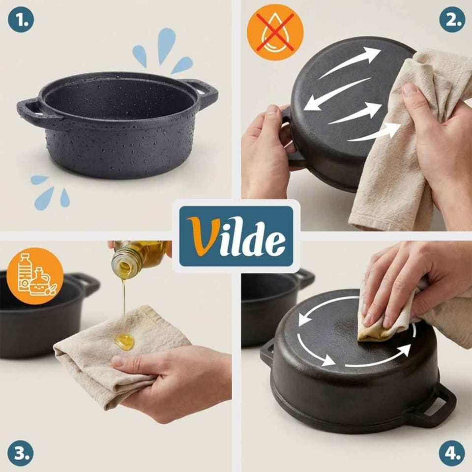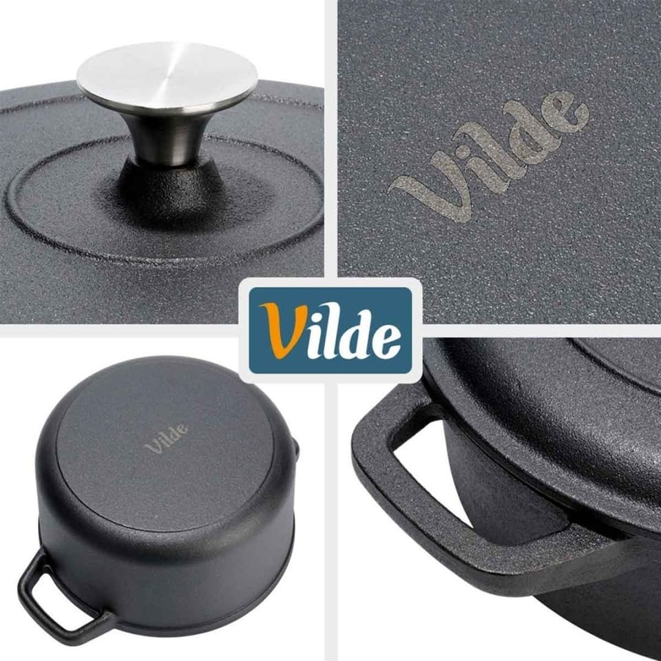 Praktyczny zestaw trzech garnków żeliwnych. Pozwalają na gotowanie, pieczenie i duszenie potraw na różnych źródłach ciepła. Możemy użytkować go w każdej kuchence, ale również bezpośrednio na grillu, czy ogniu. Żeliwo rozgrzewa się równomiernie i długo utrzymuje ciepło, dzięki czemu serwowane dania dłużej będą ciepłe. UWAGA! Po każdym użyciu umyć, wytrzeć suchą szmatką do sucha i natłuścić - w przeciwnym razie na naczyniu pojawi się rdza, co jest naturalnym procesem dla tego typu materiału. Naczynie nie posiada żadnych powłok typu "teflon". Regularna pielęgnacja zapobiega korozji i zapewnia długotrwałe użytkowanie naczynia. Oryginalny produkt marki Vilde z linii Cast Line. Wyprodukowano zgodnie z europejskimi standardami.
