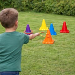 Pachołki mogą być ustawiane w różnych odległościach, co pozwala na dostosowanie poziomu trudności do wieku i umiejętności uczestników. Obręcze, woreczki i piłeczki różnią się wagą i sposobem rzucania, co pomaga dzieciom rozwijać koordynację ruchową, precyzję oraz umiejętność celowania. Dodatkowo, rywalizacja w rzucaniu do celu nie tylko wprowadza elementy zdrowej konkurencji, ale także uczy cierpliwości i koncentracji.