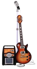 - brązowa gitara elektryczna, - stojak na mikrofon, - mikrofon z nagłośnieniem, - piec-wzmacniacz, - pasek, - kabel jack.