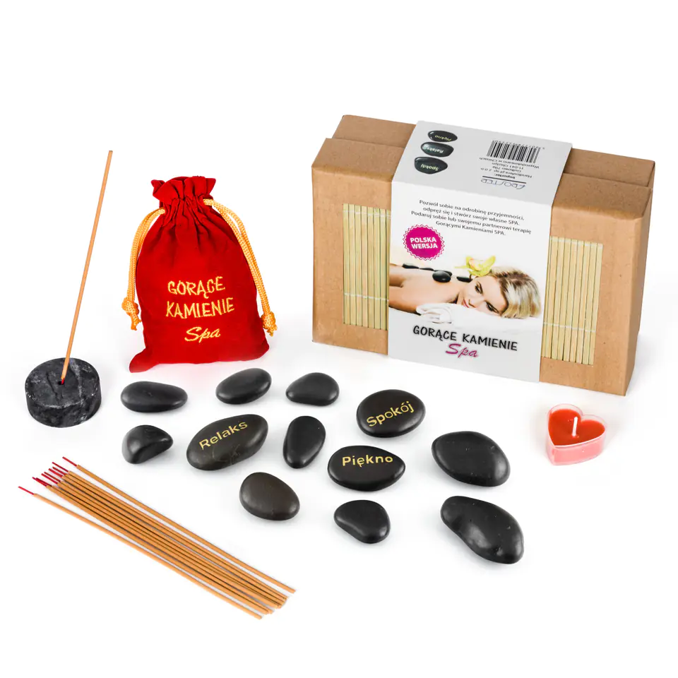 Jedno jest pewne: nie ma nic bardziej zmysłowego i relaksującego niż masaż. Jeżeli chcesz wysoko zapunktować u swojej drugiej połówki, nie musisz wykupywać karnetu do SPA – z Zestawem gorących kamieni do masażu cały zabieg relaksujący wykonasz sam.Zestaw gorących kamieni do masażu sprawi, że każdy laik będzie zdolny do zrobienia niesamowitego masażu, który rozluźni drugą osobę i pogłębi Wasze relacje. W skład zestawu wchodzi 12 kamieni do masażu w woreczku, zestaw kadzidełek i świeca w kształcie serca. Dzięki eleganckiemu opakowaniu i tak bogatej zawartości, zestaw ten nadaje się idealnie na prezent - zwłaszcza na Walentynki, rocznicę, dzień kobiet czy imieniny.