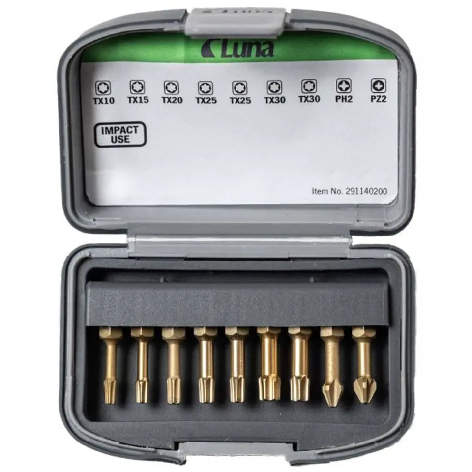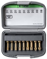 9-elementowy zestaw, składający się z grotów wkrętakowych Prime Bits typu TX, PH i PZ. Groty można używać we wkrętarce udarowej. Każdy zestaw znajduje się w etui z tworzywa sztucznego. Chwyt sześciokątny 1/4''.