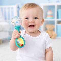 Zabawka wspiera rozwój koordynacji oko–ręka, motoryki małej oraz uczy zależności przyczynowo–skutkowych poprzez interakcję z dźwiękiem. Rączka grzechotki została wykonana z trwałego, gładkiego tworzywa wolnego od BPA, co czyni ją bezpieczną także do gryzienia i kontaktu z jamą ustną – szczególnie w okresie ząbkowania. Miękka, materiałowa główka idealnie sprawdza się do lekkiego potrząsania, co nie tylko bawi, ale również uspokaja dziecko.