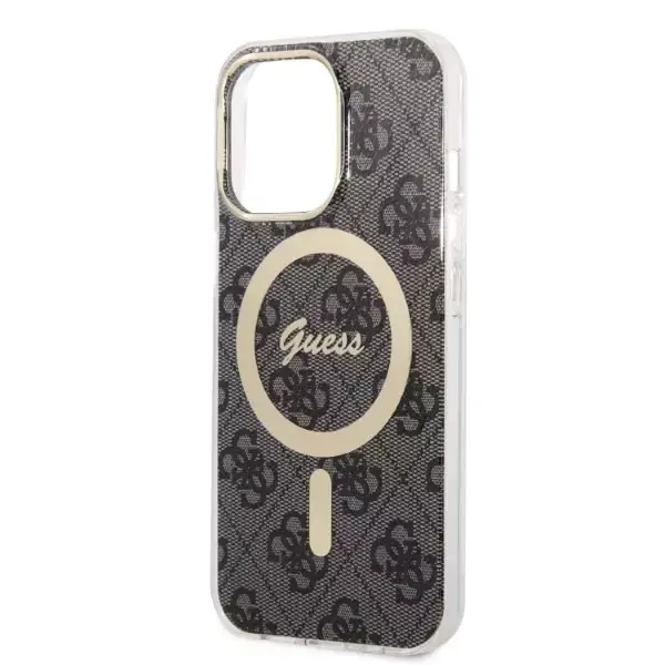 Szykowne etui z kolekcji 4G Print charakteryzuje ekskluzywny, rozpoznawalny na całym świecie wzór 4G. Elementy 4G to nieodłączny, charakterystyczny motyw obecny na wiele sposobów w różnych kolekcjach cenionego domu mody, będący jednocześnie potwierdzeniem najwyższej jakości produktów które od nich wychodzą na rynki całego świata. Cechą charakterystyczną konceptu Guess jest balansowanie pomiędzy najnowszymi trendami modowymi a klasycznym stylem przy jednoczesnym zachowaniu eleganckiego charakteru swoich projektów. Zastosowanie złotych dodatków w postaci ramki wokół aparatu i emblematu domu mody Guess dodało całemu etui elitarnego wymiaru.