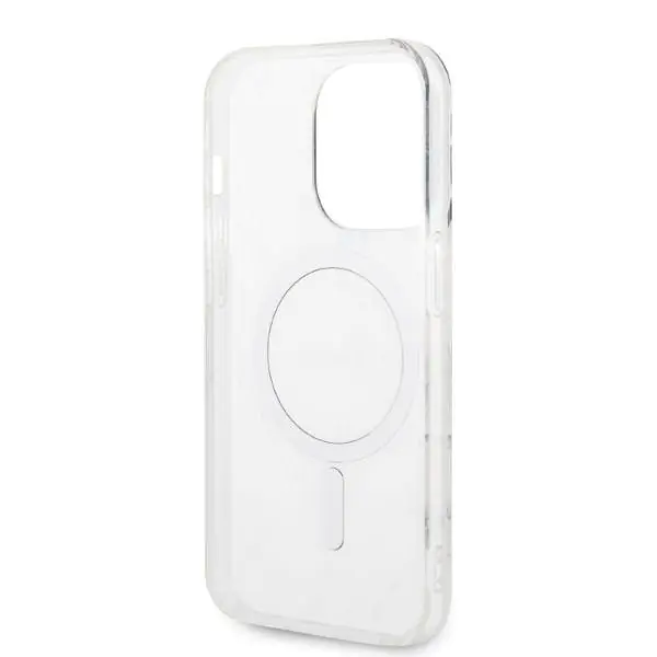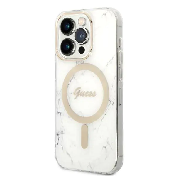Niezwykłe efekty wizualne dostarczają złote dodatki w postaci ramki wokół aparatu i emblematu domu mody Guess. Dzięki zastosowaniu złotych dodatków etui nabiera cieplejszego charakteru. Dla jak największej wygody użytkownika etui zostało wyposażone w magnetyczny ring kompatybilny z technologią MagSafe pozwalającego na szybkie, bezprzewodowe ładowanie.