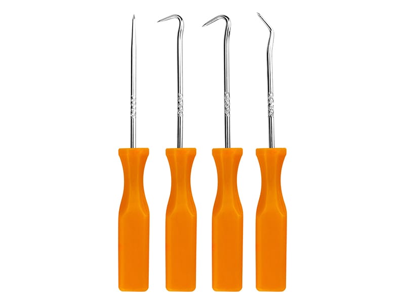 Zestaw zawiera cztery różne końcówki: hak pełny, hak kątowy 45°, hak kątowy 90° oraz szpikulec prosty, co umożliwia precyzyjne operowanie w różnych warunkach. Dzięki temu nadaje się do prac mechanicznych, serwisowych czy też modelarskich, gdzie liczy się precyzja i dostęp do trudno dostępnych miejsc.