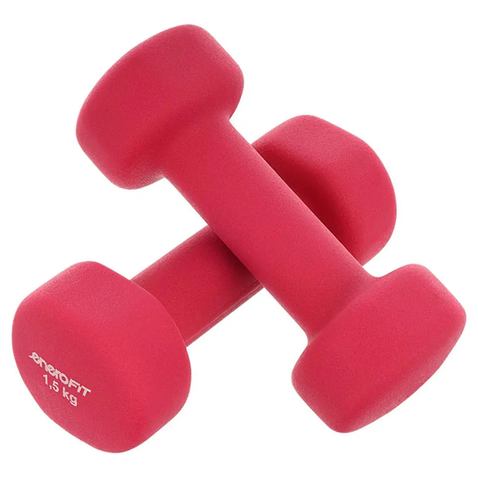 ZESTAW HANTLI NEOPRENOWYCH 2x1,5KG ENERO FIT to świetny wybór do domowego treningu, fitnessu, aerobiku i ćwiczeń rehabilitacyjnych. Lekka waga i przyjemna w dotyku powłoka sprawiają, że są idealne dla początkujących, kobiet oraz osób pracujących nad techniką.