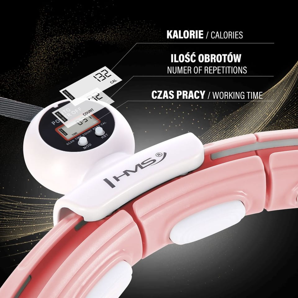 ZESTAW HULA HOP MAGNETYCZNY PINK HHM15 Z LICZNIKIEM HMS + PAS BR163 BLACK PLUS SIZE HHM15 HMS to magnetyczny regulowany hula-hop z piłką grawitacyjną do fitnessu. Pozwala na jednoczesny trening i masaż talii 360 stopni, a dzięki zastosowaniu magnesu umożliwia punktowy masaż magnetyczny. Jest perfekcyjny m.in. do wzmocnienia i ujędrnienia gorsetu mięśniowego. Dzięki regulacji obwodu HHM15 nigdy nie spadnie podczas ćwiczeń! W zestawie z pasem wyszczuplającym BR163 możesz osiągnąć swoją wymarzoną figurę jeszcze szybciej. Masaż 360 Hula-hop magnetyczny HHM15 to znakomite rozwiązanie pomagające w walce ze zbędnymi kilogramami, zlokalizowanymi w okolicach brzucha, bioder i pośladków. Działanie HHM15 jest bardzo proste i intuicyjne. Jest to zamknięta pętla, która posiada szynę z dołączoną piłką grawitacyjną (obciążeniem). Podczas wykonywania biodrami okrężnych ruchów zaczyna działać siła odśrodkowa, która przesuwa piłkę grawitacyjną po okręgu, wprowadzając mięśnie brzucha oraz tułowia w stan napięcia. Punktowy masaż magnetyczny pozwala na precyzyjne zaatakowanie obszaru na ciele, który chcemy wyszczuplić. Wystarczy element zapięcia zaznaczony na czerwono przyłożyć do np. okolic pępka lub boku ciała, a następnie zacząć kręcić hula-hop. Uwaga: przed użyciem klamra powinna być szczelnie zamknięta Trening i masaż 360 stopni w jednym Poprzez wykonywany ruch 360 stopni, sprężyny znajdujące się w głowicach umieszczonych po całym obwodzie pętli doskonale amortyzują przeciążenia oraz dostosowują się do ciała, co powoduje dodatkowy efekt masażu, zapewniając ciału przyjemne uczucie. Trójwymiarowa technika masażu szybko pobudza mięśnie. Wbudowane wypustki o specjalnie opracowanym wyglądzie posiadają absorpcje wstrząsów dla komfortowego treningu. Dozuj intensywność wibracji poprzez szybkość obracania. Prosta i szybka regulacja obwodu W szybki i wygodny sposób zmniejsz lub zwiększ rozmiar koła, wystarczy wypiąć lub wpiąć tyle elementów, ile potrzebujesz. HHM15 posiada łącznie 16 elementów. Rozmiar można ustawić w zakresie od 12 do 16 elementów, czyli obwód w talii od 78,5 cm do 110 cm (średnica pętli: 34 cm do 44 cm). Dzięki temu urządzenie nigdy nie spadnie podczas treningu, dlatego nawet początkujący mogą z niego korzystać. Montaż odbywa się za pomocą klipsów. Wystarczy wcisnąć klips, aby wyciągnąć lub wsunąć dodatkowy element. Potem należy wsunąć do pętli szynę z piłką grawitacyjną, dostosować długość paska i gotowe. Ważne, aby nie wyciągać elementu, w którym znajduje się sensor odpowiedzialny za dostarczanie danych. Regulacja intensywności treningu Dodatkowym atutem jest możliwość zmiany zakresu długości paska piłki grawitacyjnej, co pozwala regulować intensywność i poziom trudności treningu - im dłuższy pasek, tym więcej siły trzeba włożyć w trening. Możliwość regulacji to: od 20 cm do 38 cm. Im dłuższy pasek, tym większa siła odśrodkowa podczas wykonywania ćwiczeń, czyli większy ciężar oraz wyższy poziom trudności wykonywania obrotów. Komfort użytkowania - cicha praca i wytrzymałe materiały Urządzenie posiada konstrukcję wykonaną z wysokiej jakości PVC. Szyna osadzona jest na łożyskach kulkowych, które zostały wykonane ze stali nierdzewnej. To wszystko razem sprawia, że obrót jest elastyczny i niezakłócony co jeszcze bardziej potęguje uczucie zadowolenia podczas treningu. Dodatkowo kółka wyposażone zostały w oponki znacznie wyciszające prace. Najszybsze efekty w zestawie! Najszybsze efekty treningu uzyskamy, łącząc trening na hula hopie HHM15 z jednoczesnym wykorzystaniem pasa HMS BR163 . Taki trening pozwoli jeszcze szybciej wymodelować sylwetkę. Użycie pas zwiększa potliwość podczas treningu, dzięki czemu pozbywamy się nie tylko wody z organizmu, ale również toksyn, soli czy niektórych metali. Pas posiada wywietrzniki do odprowadzania potu i może być noszony przez wiele godzin, bez ryzyka odparzenia skóry. Pas wyszczuplający BR163 Dzięki elastycznemu neoprenowi i zapięciu na rzep ściągacz idealnie dopasowuje się do ciała, gwarantując pełen komfort. Mogą z niego korzystać zarówno kobiety, jak i mężczyźni. Ułatwia odprowadzanie potu, co sprawia, że przez cały czas pas będzie doskonale przylegać do twojego ciała. Pas posiada wywietrzniki do odprowadzania potu i może być noszony przez wiele godzin, bez ryzyka odparzenia skóry. Zapewnia optymalny przepływ powietrza i wspomaga mikrokrążenie. Rozmiar pasa plus size Dzięki zastosowaniu mieszanki neoprenu i poliestru ściągacz jest zapinany na rzep na całej długości. Takie zapięcie umożliwia wykorzystanie go przez osoby posiadające rozmiar aż do XXL. Raz zakupiony pas będzie mógł nam służyć nawet po utracie wielu zbędnych kilogramów. Trenuj gdziekolwiek zechcesz Korzystanie z obu produktów jednocześnie potęguje ich efekty. Możesz ćwiczyć z hula hop i pasem w domu lub na świeżym powietrzu, kiedy tylko masz czas i ochotę. Jeśli będziesz regularnie korzystać z naszego zestawu, zauważysz pozytywne zmiany w swoim ciele już po kilku tygodniach. Twoja talia będzie bardziej wyrzeźbiona, a brzuch spłaszczony. Efekty ćwiczeń Smukła talia Płaski brzuch Redukcja cellulitu Zgrabne ramiona Jędrne uda i pośladki Lepszy przepływ krwi Poprawa postawy Specyfikacja: Materiał: PVC, ABS, PP Kolor: różowy Regulacja obwodu: 12 - 16 elementów średnica wewnętrzna 25 cm - 35 cm średnica zewnętrzna 34 cm - 44 cm średnica jednego elementu 4,5 cm Talia: 78,5 cm - 110 cm Waga obciążenia: 400 g. Regulacja paska z obciążeniem: 20 cm - 38 cm Funkcje wyświetlacza LCD: czas, kalorie, ilość powtórzeń, prędkość obrotów Wygodne zapięcie na klips Łożyska kulkowe, stal nierdzewna Absorpcja wstrząsów: TAK Specyfikacja pasa: Kolor: czarny Materiał: neopren 70%, poliester 30% Rozmiar: 