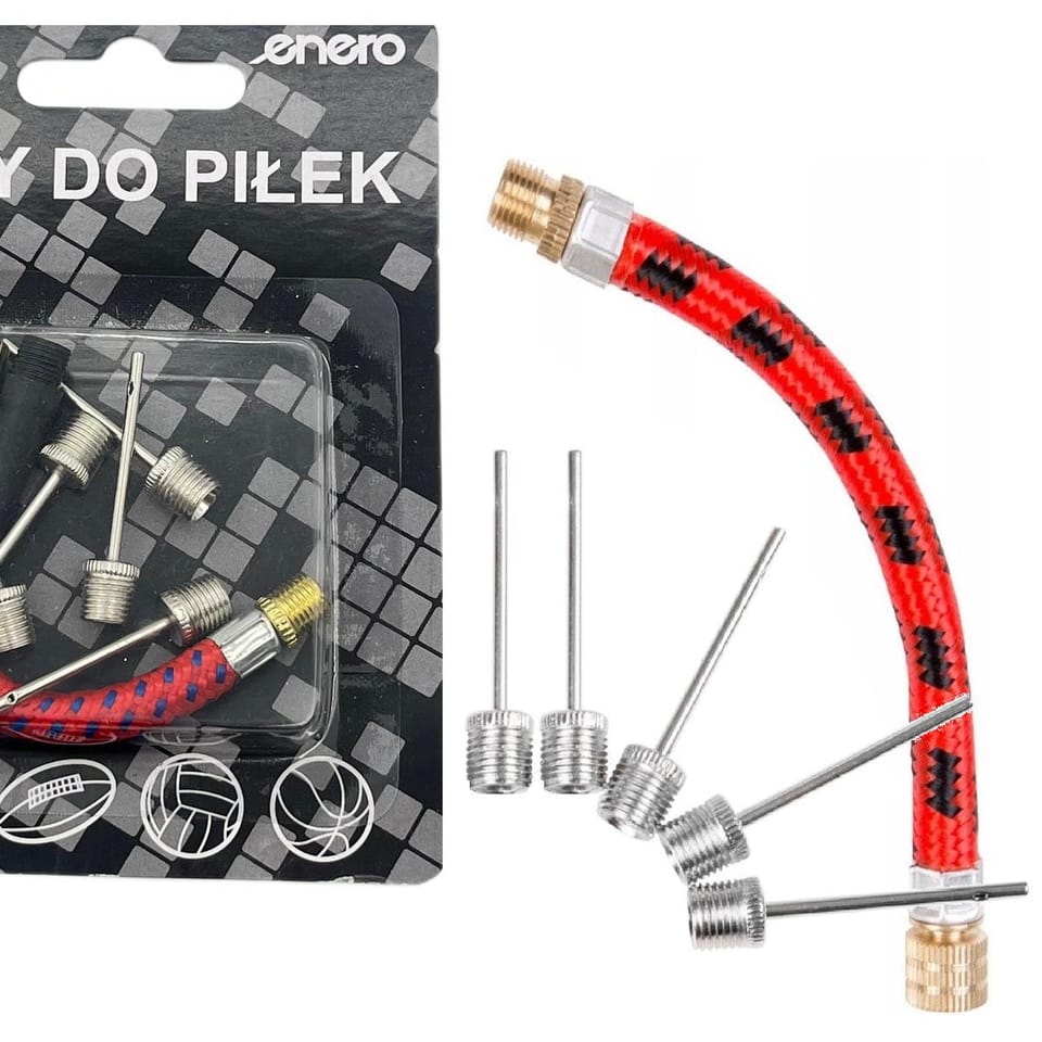 ZESTAW IGIEŁ 5SZT Z WĘŻYKIEM DO POMPKI PIŁKI ENERO to wszystko, czego potrzebujesz do szybkiego i bezpiecznego pompowania piłek. Jeden zestaw, wiele możliwości! Kup teraz i bądź gotowy na każdą grę!