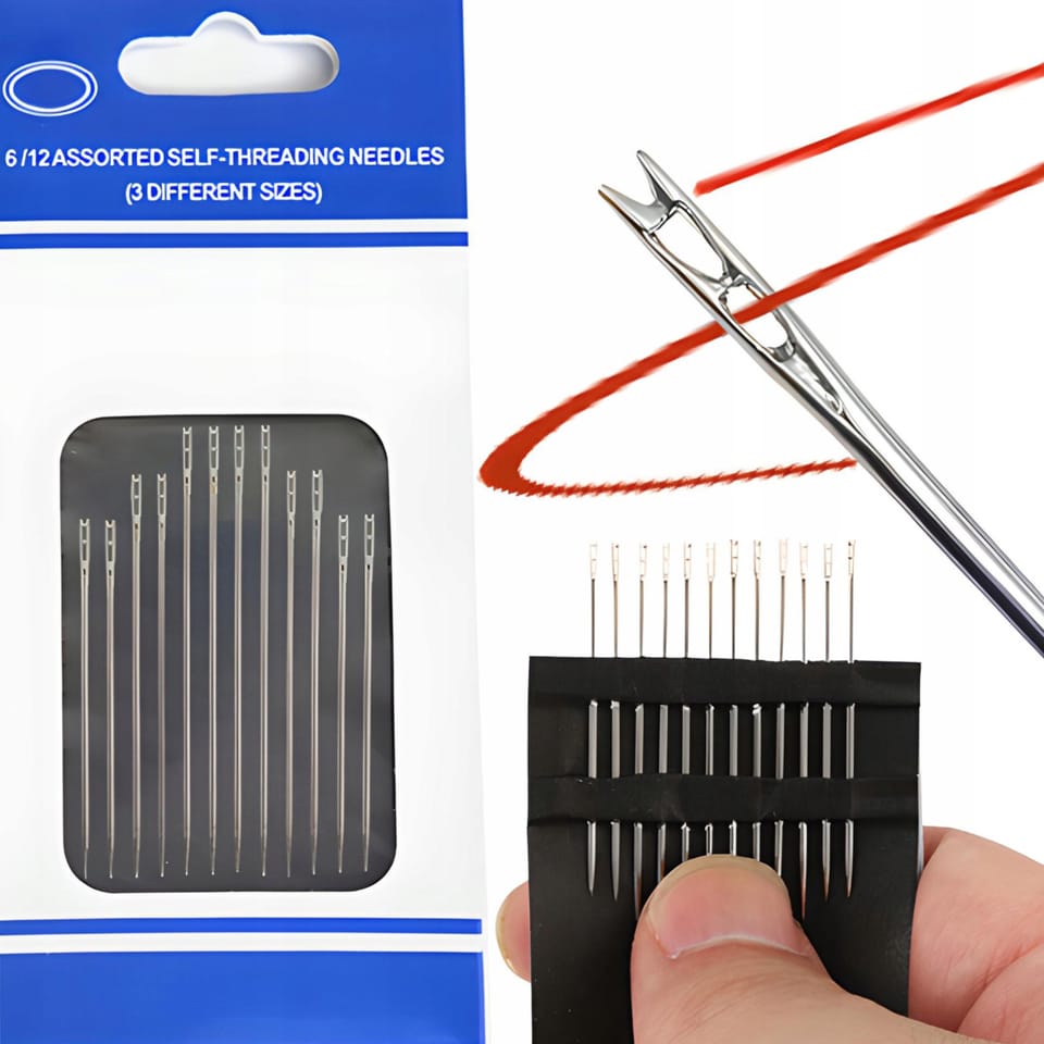 Kod producenta: 1029783Kompletny zestaw 12 samonawlekających igieł wykonanych z metalu to praktyczne rozwiązanie zarówno dla początkujących, jak i zaawansowanych miłośników szycia. Dzięki specjalnej konstrukcji nawlekanie odbywa się od góry, co znacznie ułatwia i przyspiesza przygotowanie igły do pracy szczególnie osobom starszym lub mającym problemy ze wzrokiem. Różne długości igieł pozwalają na ich szerokie zastosowanie przy szyciu różnych tkanin, cerowaniu czy przyszywaniu guzików.Cechy produktu: