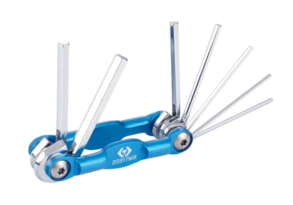 Lekki, aluminiowy scyzoryk z zestawem narzędzi HEX. W scyzoryku znajdują się klucze w rozmiarach H1.5, H2, H2.5, H3, H4, H5, H6. Karta produktu - 20317MR