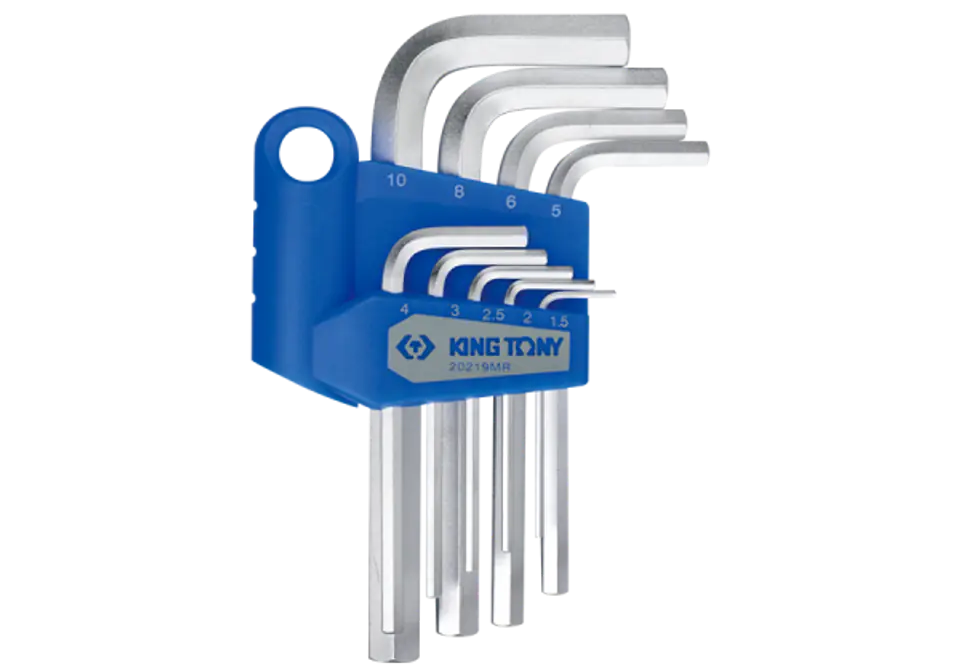 Zestaw kluczy imbusowych HEX firmy King Tony. Klucze o rozmiarach [ mm ]: 1.5, 2, 2.5, 3, 4, 5, 6, 8, 10. Karta produktu - 20219MR
