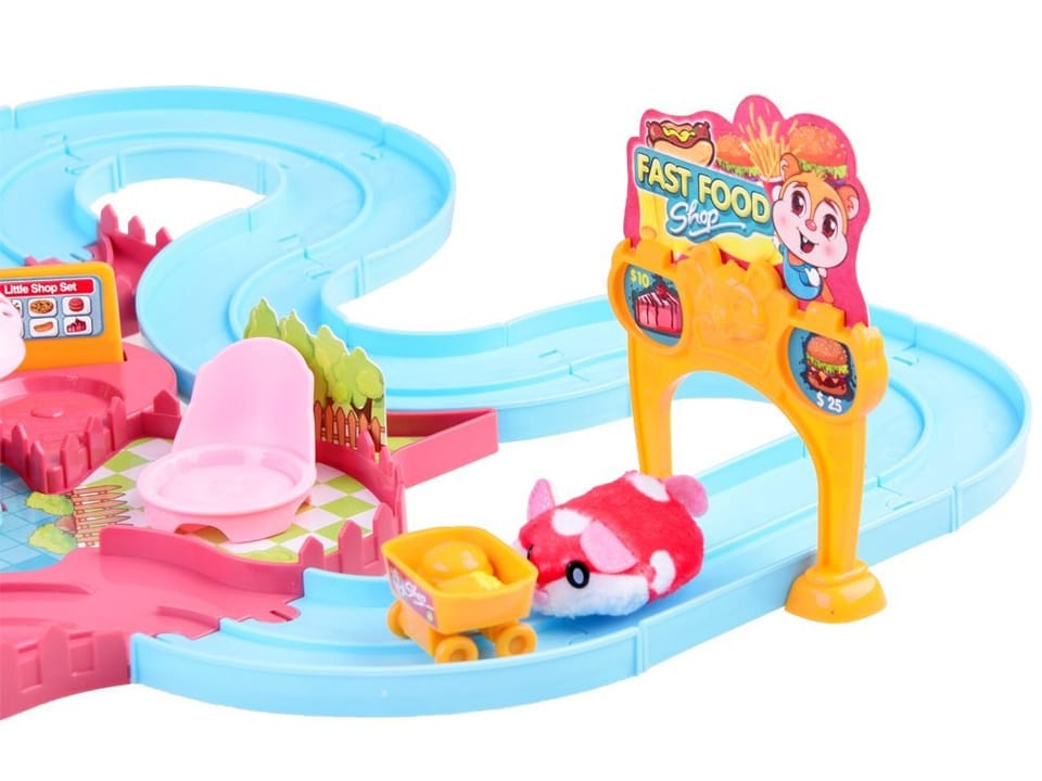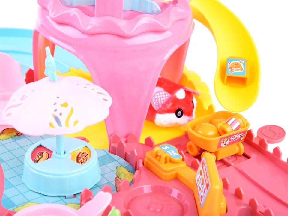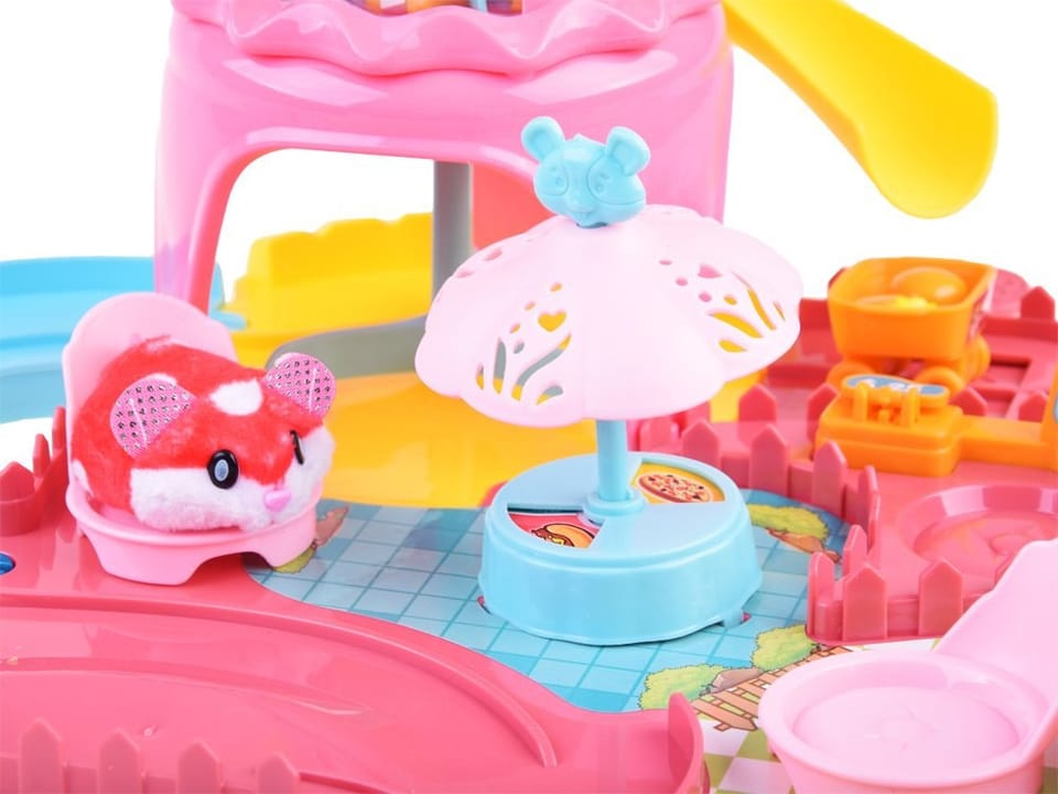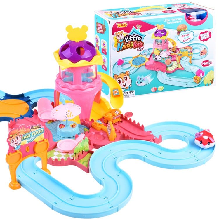 Kolorowy tor dla chomika to mocno rozbudowane centrum zabawy. Zestaw wyposażony w tor dla interaktywnego chomika, bar samoobsługowy typu Fast Food, zjeżdżalnie, trasy do pokonywania odległości. Super zabawka w atrakcyjnych kolorach z mnogością akcesoriów do zabawy, zapewni każdemu dziecku mnóstwo pozytywnie spędzonego czasu.