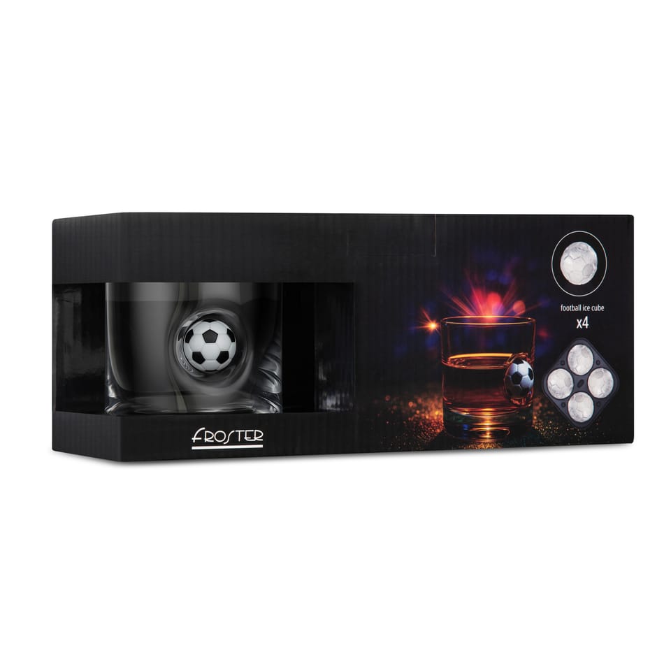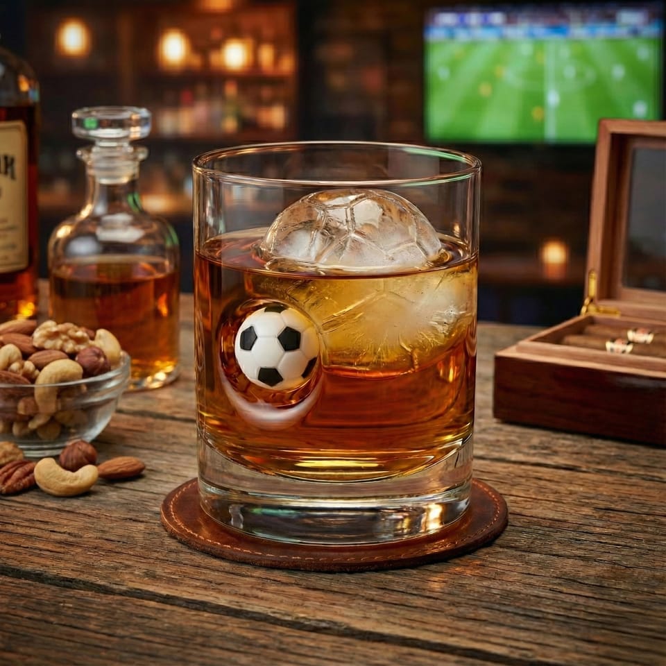 Piłkarski zestaw z klasą Niech każdy mecz ma swoją oprawę - nawet ten oglądany z kanapy. Ten kibicowski zestaw łączy styl i piłkarski charakter: szklankę do whisky z piłką zatopioną w szkle oraz formę do lodu, która robi kostki w kształcie piłek nożnych. To mały detal, który robi dużą różnicę, bo kiedy emocje na boisku sięgają zenitu, fajnie mieć pod ręką coś, co podkręca klimat od pierwszego gwizdka do ostatniej akcji.To prezent dla kibica, który lubi detale i ma swoje rytuały: ulubiona drużyna, odpowiedni moment na toast, chłodny łyk w przerwie i ten dreszczyk, kiedy piłka leci w pole karne.Zestaw sprawdzi się jako prezent na urodziny, święta, na oglądanie meczów, derbów i wielkich turniejów - zawsze wtedy, gdy sportowe emocje zasługują na równie dobrą oprawę. Szklanka stworzona dla wyjątkowego kibica Są takie chwile i takie emocje, które zostają w pamięci na długie lata. Legendarne mecze, historyczne zwycięstwa i towarzystwo, z którym każda wspólna minuta smakuje lepiej niż poprzednia. Momentów tych nie wolno przegapić ani pozwolić im przemknąć niezauważenie. Trzeba je uczcić, nadać im właściwą oprawę, zatrzymać je choć na chwilę. Właśnie z myślą o takich wydarzeniach powstała ta szklanka z piłką zatopioną w szkle. Wyjątkowa, pełna charakteru, stworzona, by towarzyszyć chwilom, które po prostu trzeba świętować. Piłkarski klimat w każdym napoju Foremka do lodu w piłkarskim stylu to prosty sposób, by dodać sportowego charakteru każdemu serwowaniu napoju i podkreślić piłkarską pasję.W jednej turze przygotujesz aż 4 duże lodowe piłki, które od razu robią wrażenie i świetnie wyglądają w szklance. Dzięki elastycznej, silikonowej formie wyjmowanie gotowych „futbolówek” jest szybkie i wygodne - bez siłowania się i bez kruszenia lodu.To praktyczny dodatek, który podkręca sportowy klimat przy każdej okazji - czy to w gronie znajomych, czy po prostu dla siebie. Prezent dla kibica, prezent dla piłkarza Podaruj kibicowi szklankę z piłką, aby mógł celebrować każdy gol, triumf ukochanej drużyny i wieczór pełen sportowych emocji w wyjątkowy sposób. Niech stanie się jego małym rytuałem - łyk za drużynę, za wspólne chwile, za pasję, która łączy ludzi.Wręcz ją piłkarzowi, aby mógł wznieść toast za ciężką pracę, za wygrane pojedynki i za drobne sukcesy, które prowadzą do wielkich zwycięstw. I by zawsze pamiętał, że nawet w świętowaniu warto zachować umiar - bo to, co najlepsze, smakuje wtedy, gdy trwa dłużej.