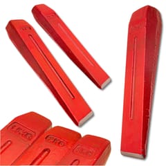 Kliny zostały wykonane z litej stali najwyższej jakości, co gwarantuje ich wytrzymałość i odporność na intensywne użytkowanie przez wiele lat. Materiał ten cechuje się również odpornością na rdzę oraz korozję, dzięki czemu narzędzia zachowają swoje walory estetyczne nawet przy częstym kontaktu z wilgocią czy innymi czynnikami atmosferycznymi. Profilowany rowek dodatkowo ułatwia manipulację klinem podczas pracy.
