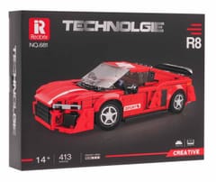 Zestaw 413 klocków konstrukcyjnych do samodzielnej budowy sportowego samochodu R8. Zabawka przeznaczona dla dzieci od 14-go roku życia, a poziom jej trudności to 2/5. Auto posiada wnętrze odwzorowane z detalami, które dobrze widać przez przezroczyste imitacje szyb. W zestawie dołączono instrukcję obrazkową. Układanie klocków konstrukcyjnych rozwija u dzieci zdolności manualne, wyobraźnię przestrzenną i cierpliwość. Specyfikacja: - zestaw 413 klocków konstrukcyjnych, - trudność złożenia na poziomie 2/5, - przezroczyste szyby pozwalające obejrzeć wnętrze auta z detalami, - wierne odwzorowanie prawdziwego samochodu, - przeznaczony dla dzieci od 14-go roku życia, - możliwość ozdobienia auta naklejkami z zestawu, - instrukcja obrazkowa w zestawie.
