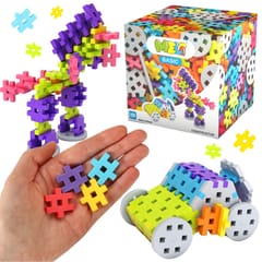 Zestaw składający się ze 100 elementów, które można łączyć na wiele różnych sposobów, tworząc niezliczone konstrukcje. Wykonane z wysokiej jakości, bezpiecznego dla dzieci materiałów, klocki są trwałe i odporne na intensywną zabawę. Kolorowe elementy w zestawie zachęcają do tworzenia różnorodnych kształtów i form, co wspomaga rozwój zmysłów oraz koordynacji wzrokowo-ruchowej.