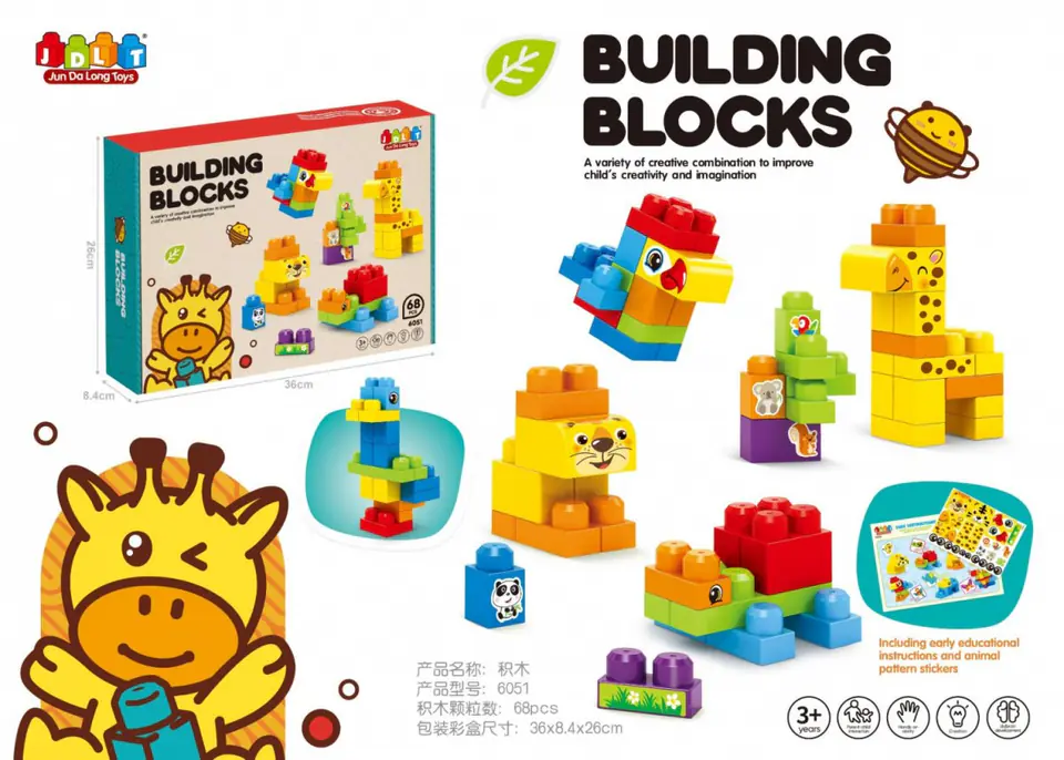 Zestaw klocków konstrukcyjnych dla dzieci 68 el. zwierzątka ZOO + naklejki