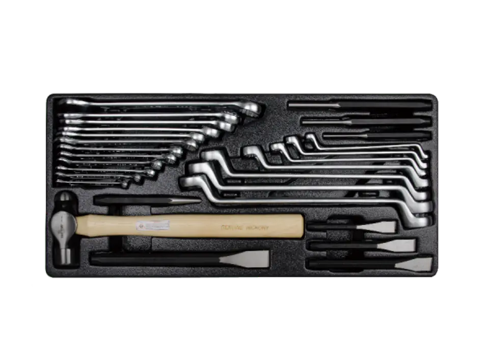 ZESTAW KLUCZY CALOWYCH 21cz. - PŁASKO-OCZKOWE 12cz. 1/4-1", OCZKOWE ODGIĘTE 75* 7cz. 1/4-1.1/8", WKŁAD DO WÓZKA King Tony