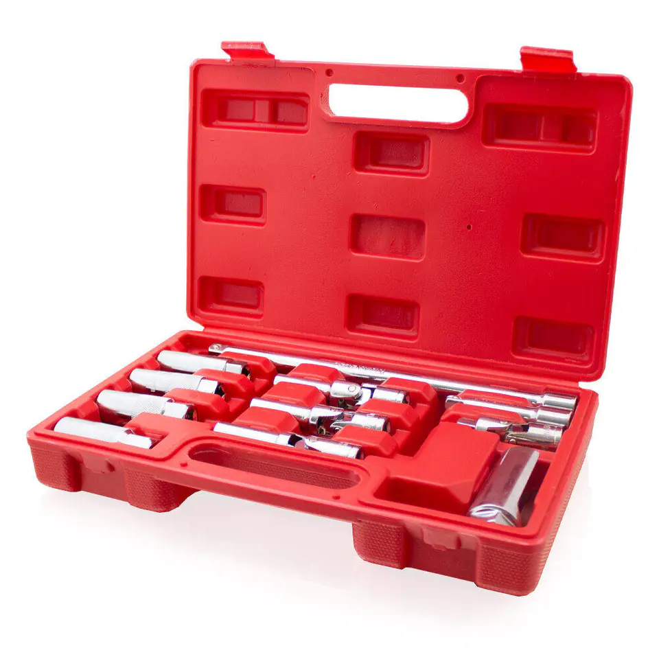 Zestaw kluczy do świec Bituxx wykonany jest z wysokogatunkowej stali chromowo-wanadowej i charakteryzuje się długą trwałością. W zestawie znajdują się najbardziej popularne rozmiary kluczy do świec zapłonowych, a przedłużki umożliwiają łatwe dotarcie do świec.
