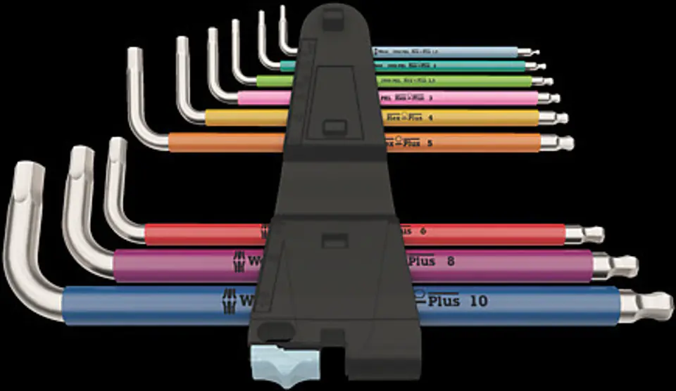 Wykonanie: ze stali nierdzewnej, ciągliwo-twardej (54 HRC) dzięki próżniowemu hartowaniu w lodzie, z osłonką z węża do ochrony rąk. W różnych kolorach służących do łatwiejszej identyfikacji rozmiarów klucza. Geometria Hex Plus, dzięki temu o 20% większy statyczny moment obrotowy i ochrona śrub z łbem z gniazdem sześciokątnym. Kulista główka pozwala na skręcanie połączeń także w pozycji skośnej. Dostawa w odpornym na zużycie klipsie z pełnej gumy i z odpornym na wytarcie oznaczeniem wielkości.