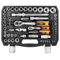Zestaw kluczy 108 elementów 1”, 1” 10-212 marki NEO to zestaw oferowany w wygodnej walizce do przechowywania oraz transportowania narzędzi. Produkt objęty jest 25-letnim okresem gwarancyjnym. To doskonała propozycja dla profesjonalistów oraz majsterkowiczów – do zastosowań przydomowych i zawodowych.