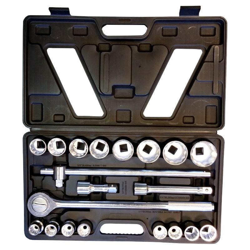 Nasadki 6-ciokątne 3/4". Zestaw w praktycznej walizce z tworzywa sztucznego.