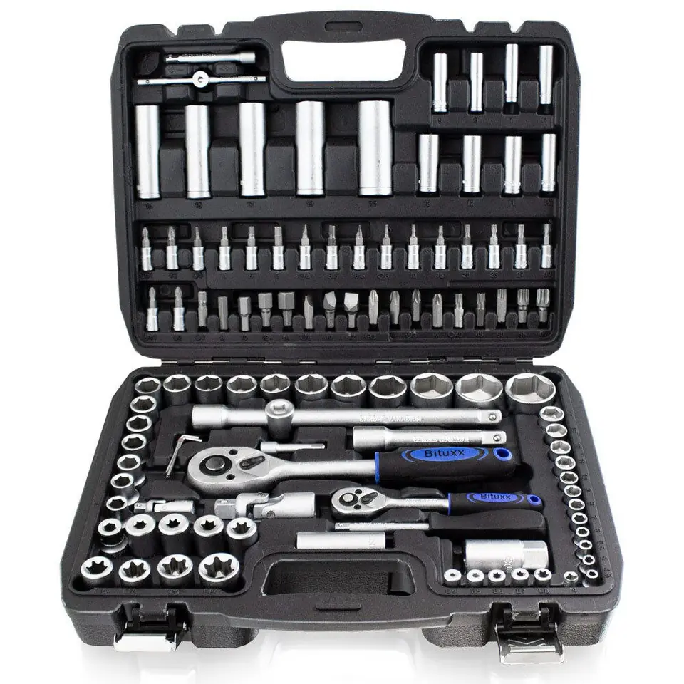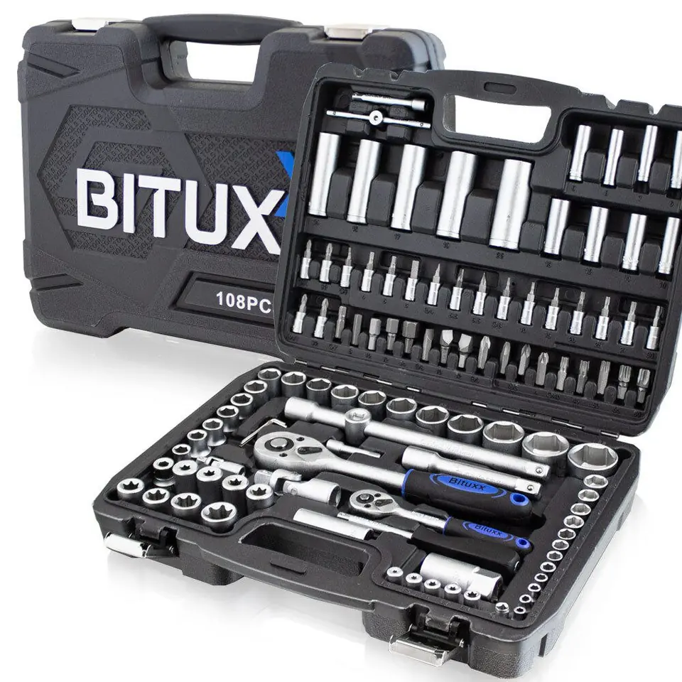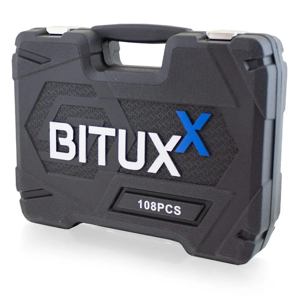 Walizka: mocny plastik ABSNarzędzia: stal chromowo-wanadowaMarka narzędzi: Bituxx