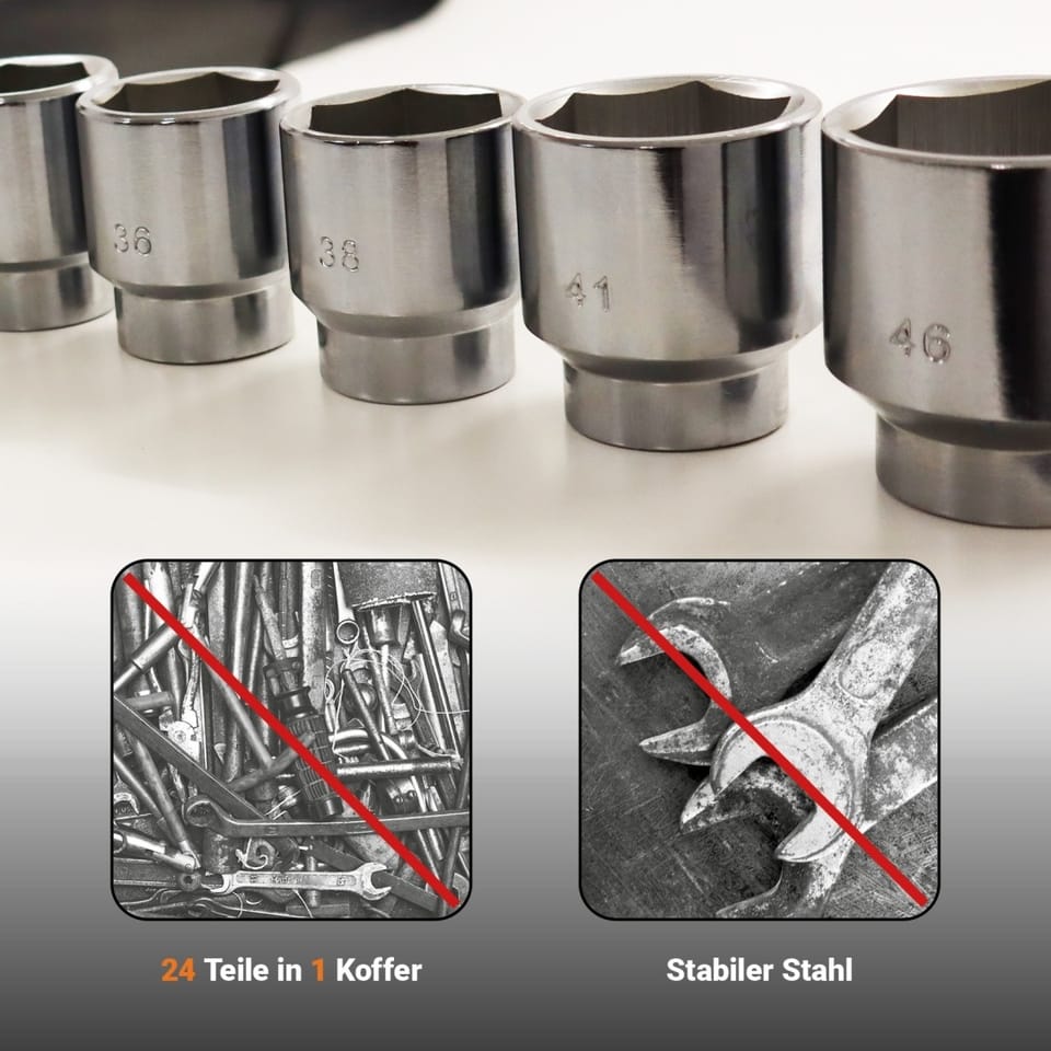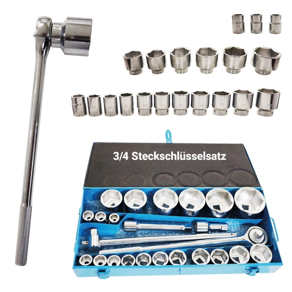 Profesjonalny zestaw kluczy nasadowych 3/4" marki BITUXX – stworzony do najcięższych zadań!Idealny do warsztatu, serwisu maszyn, ciągników, maszyn budowlanych oraz przemysłu.
